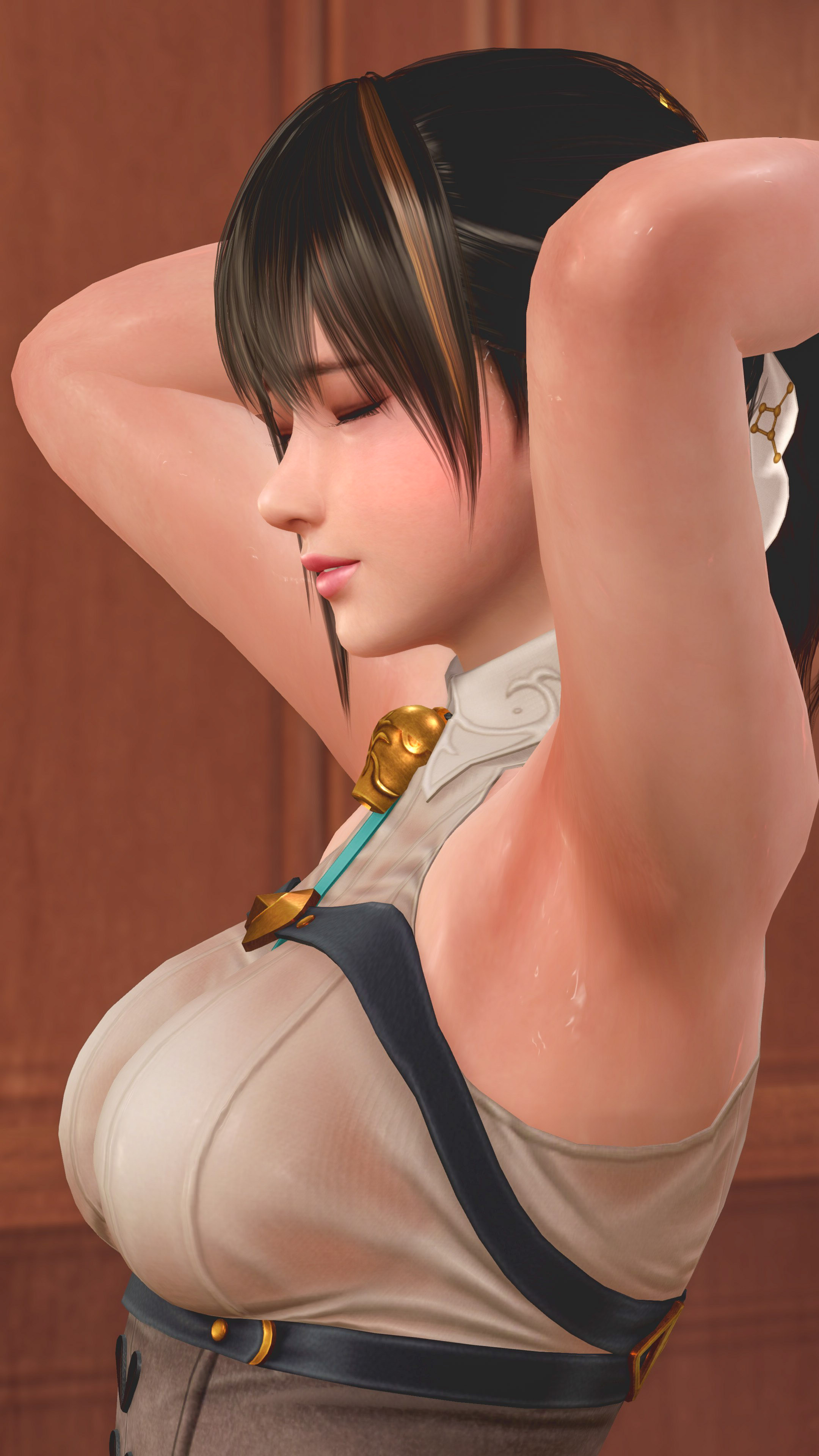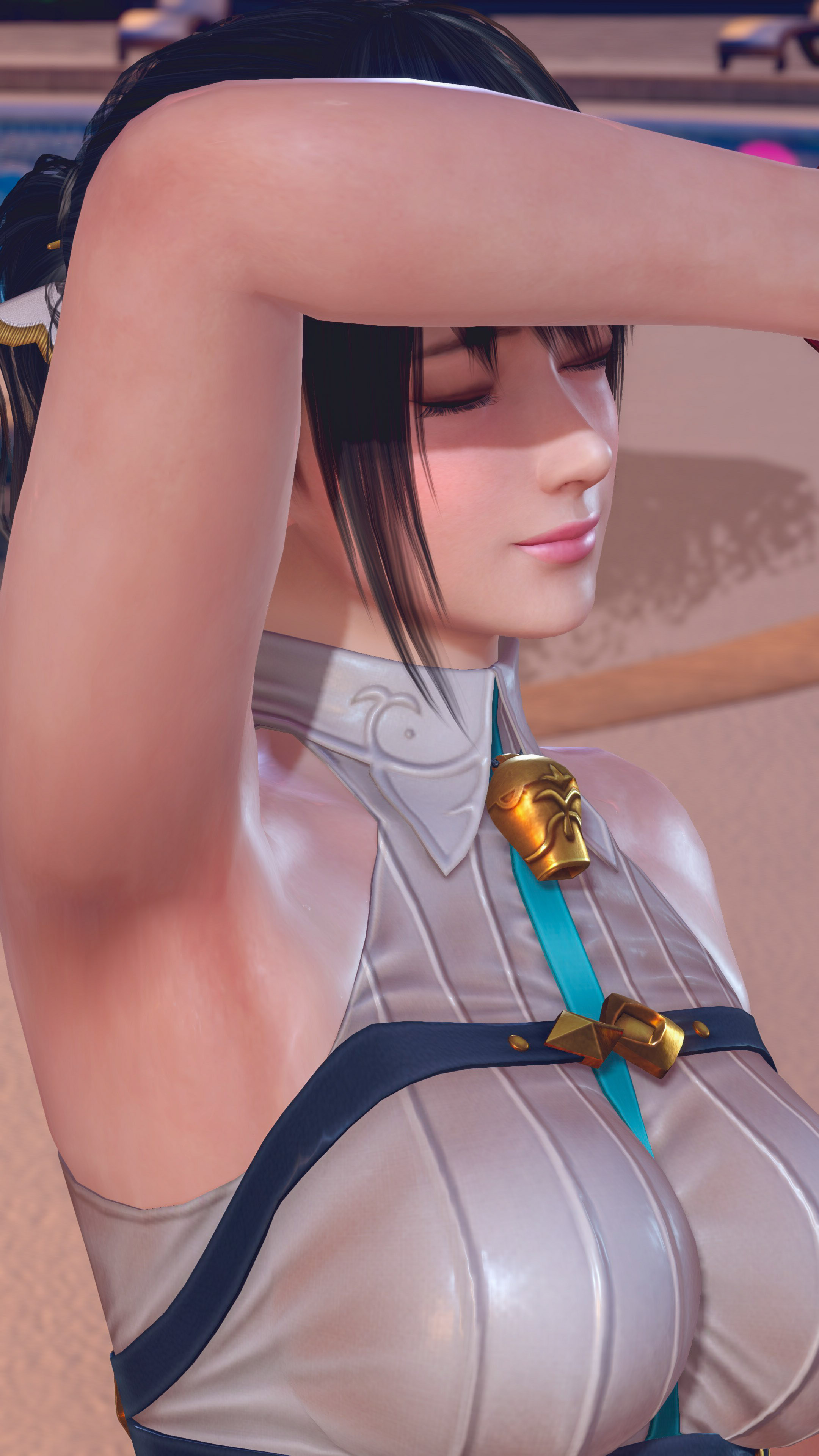 こういうホルターネックの格好はワキを撮影したくなるんです。