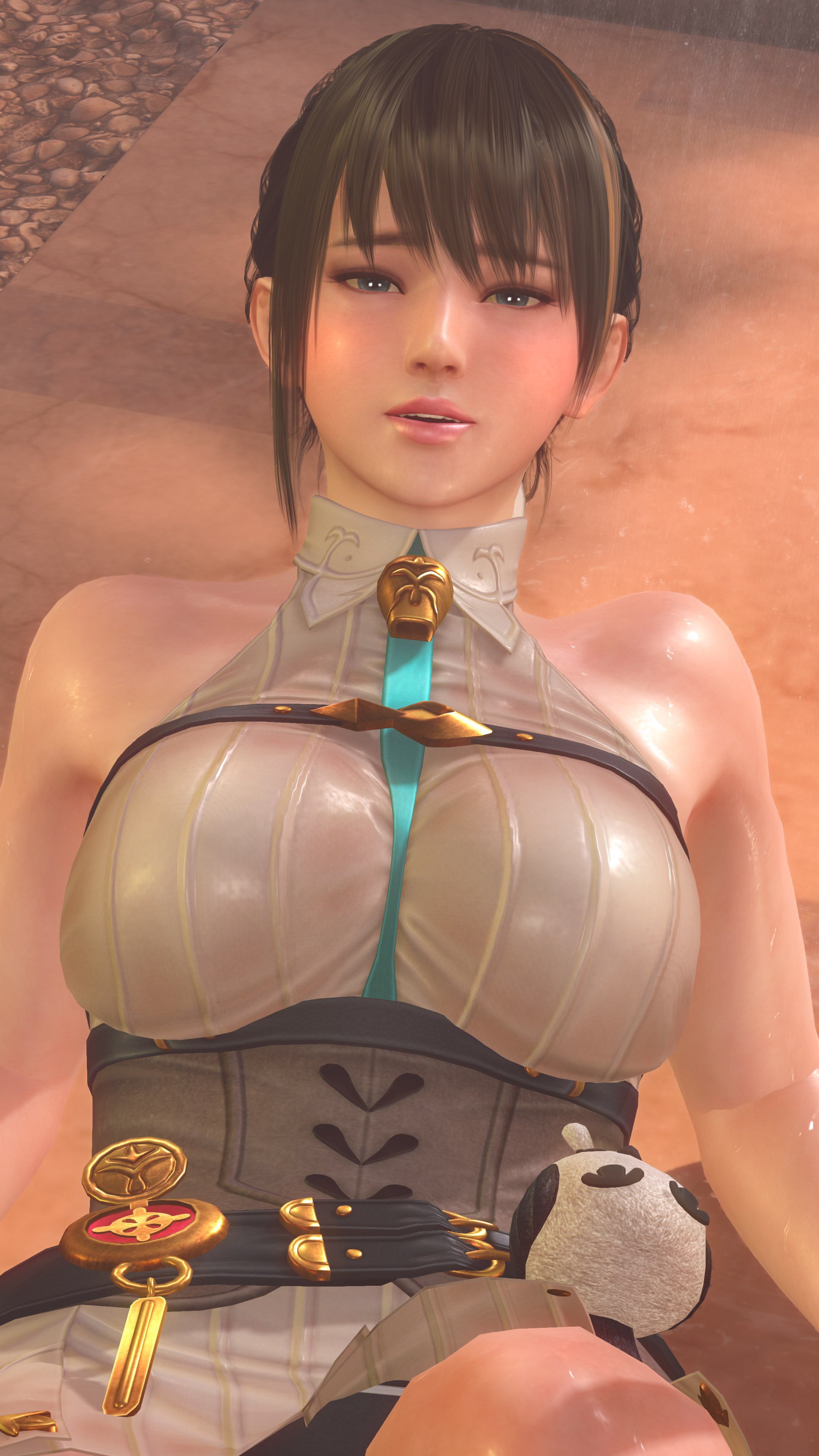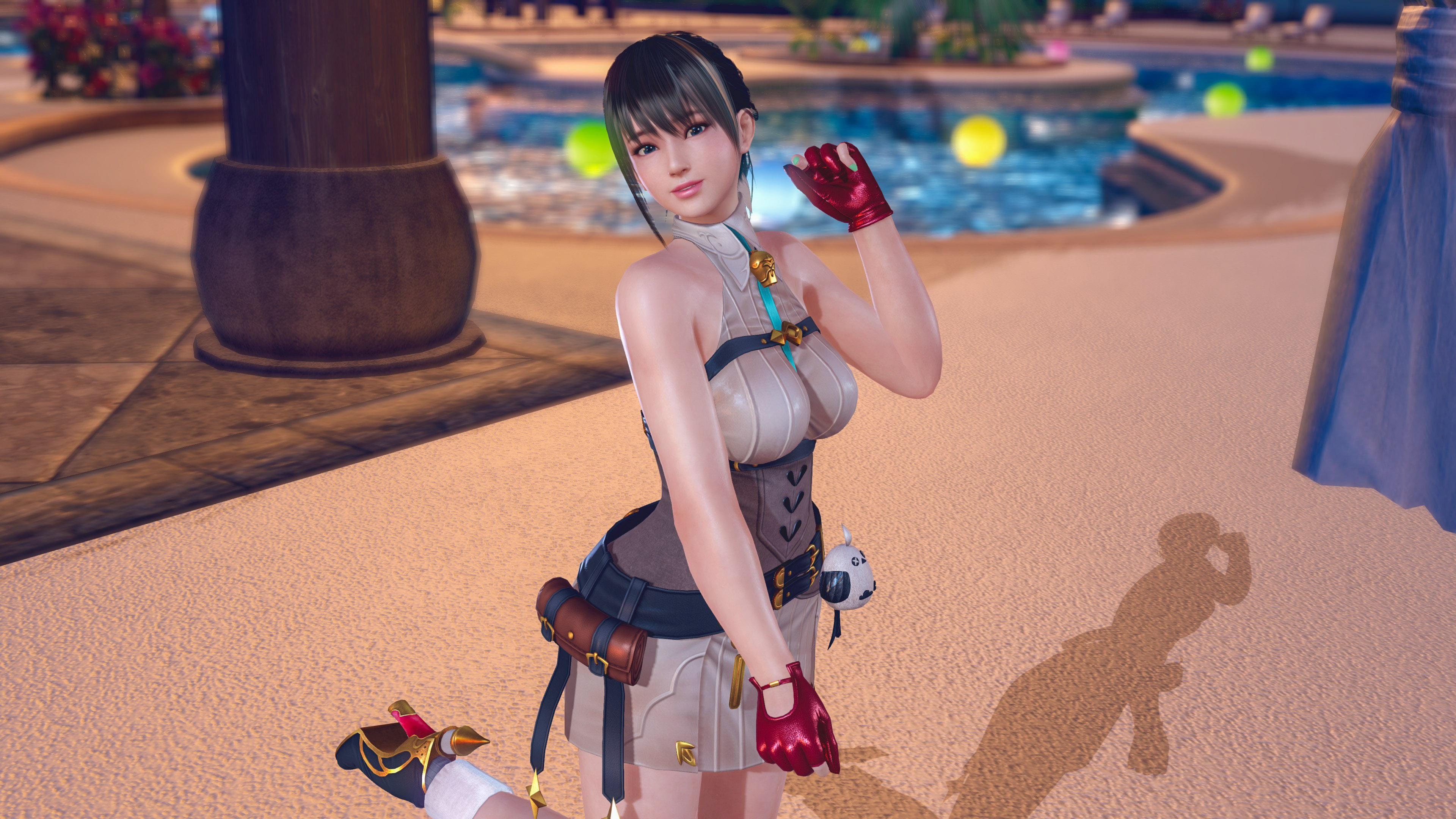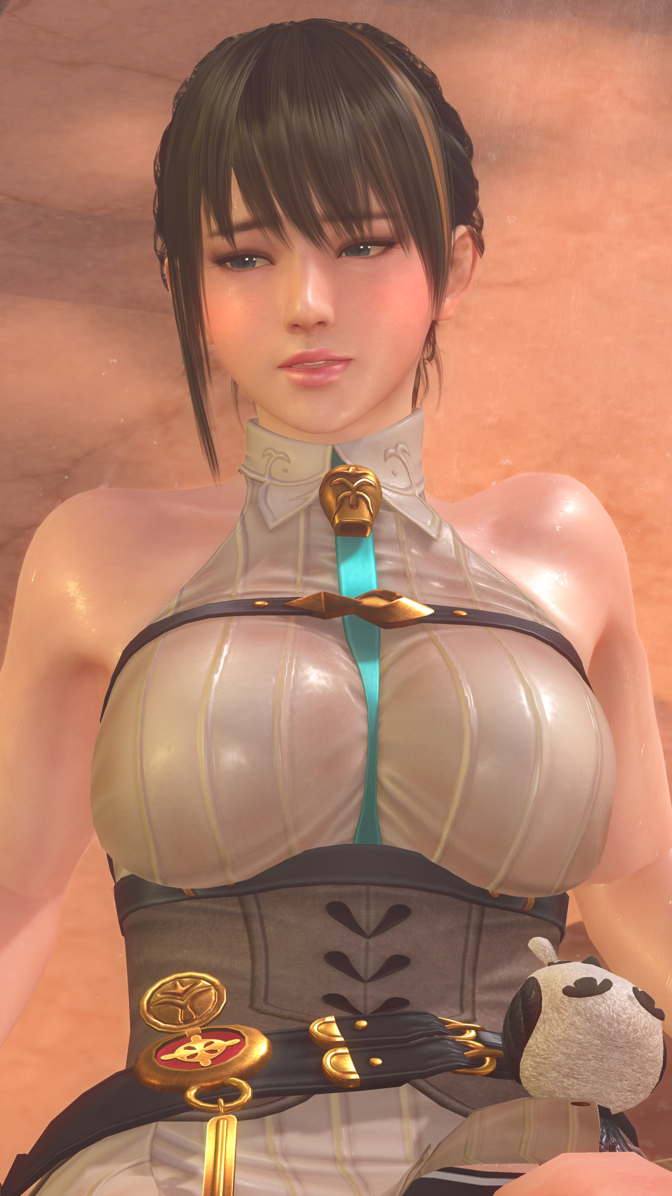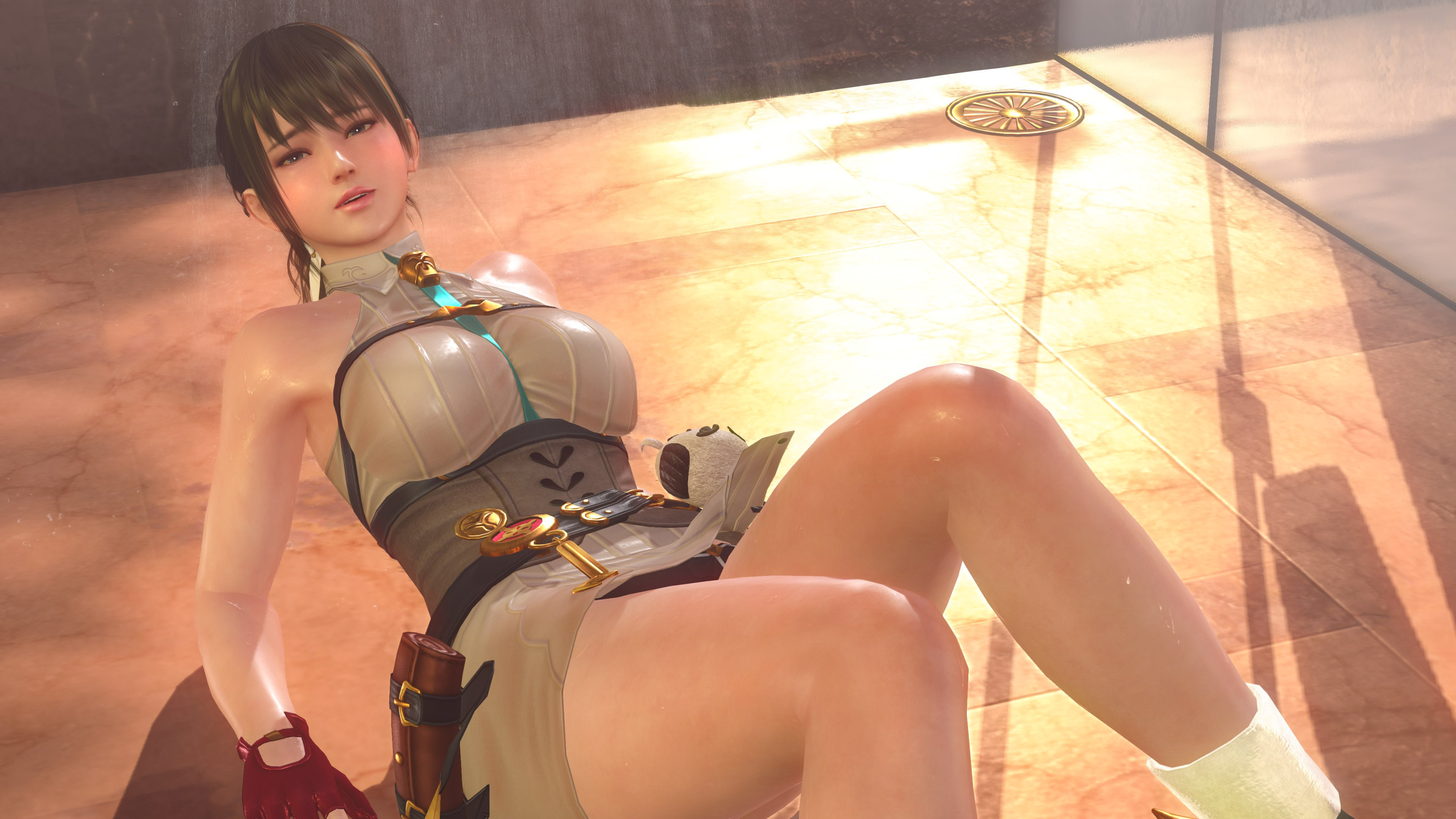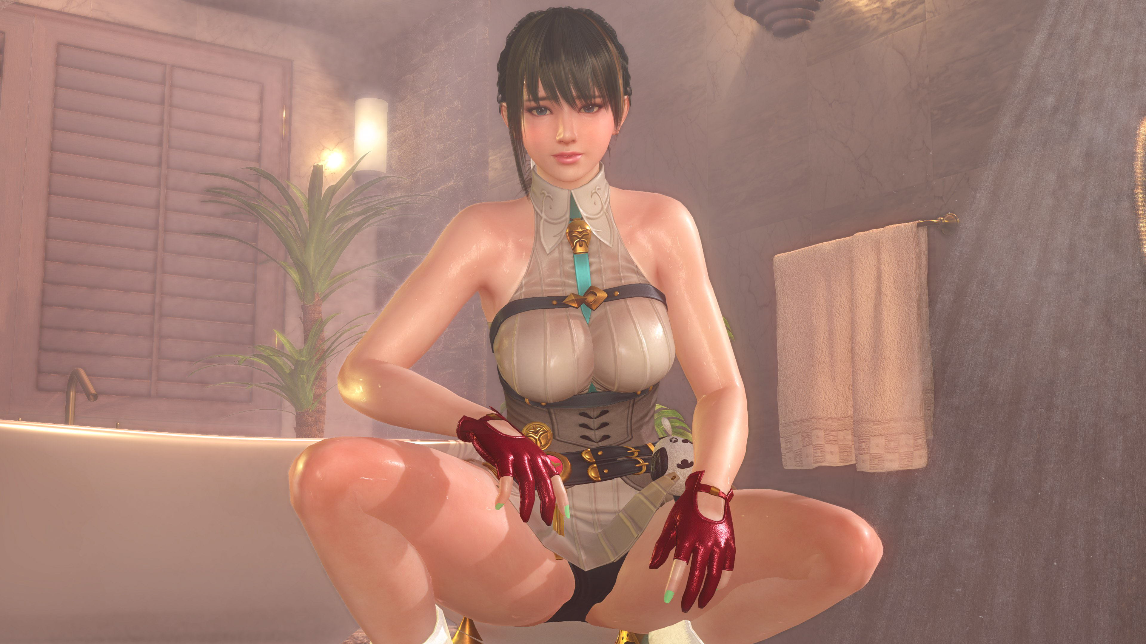 前回に引き続き「ユミア・錬金術士の調査服」の撮影です。上着をオフにすると、ファンタジーな世界観の衣装から、エロスを撒き散らすオフィスコーデって感じにガラッと変わりますね。