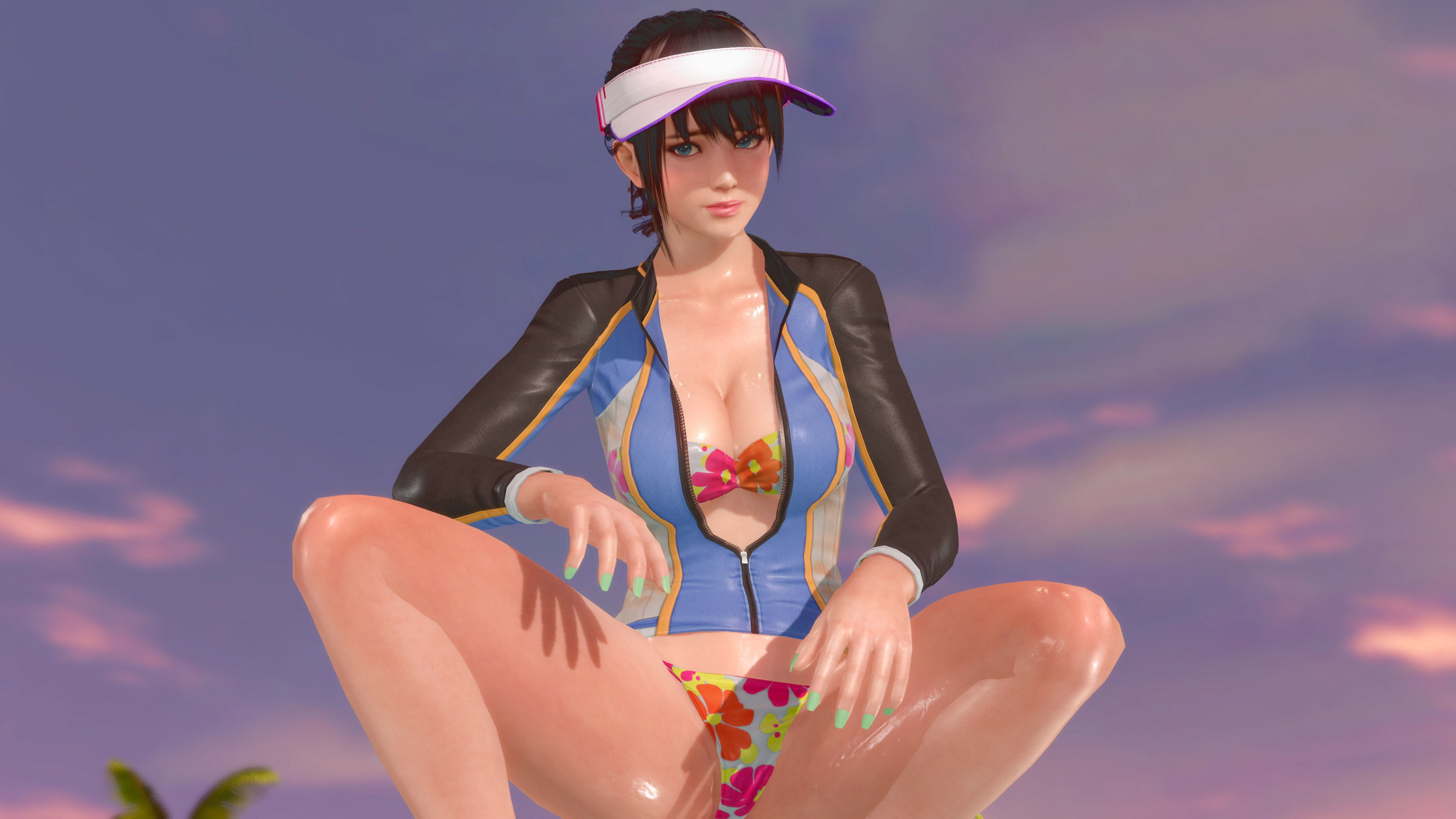 「悪くねぇな」のポーズを中心に、スポーティな女の子が放つ、スポーティな濃厚メス臭を密着クンクンするイメージで撮影しました。4種類のスポーツ系水着と着崩れ有無でパターン作ってます。